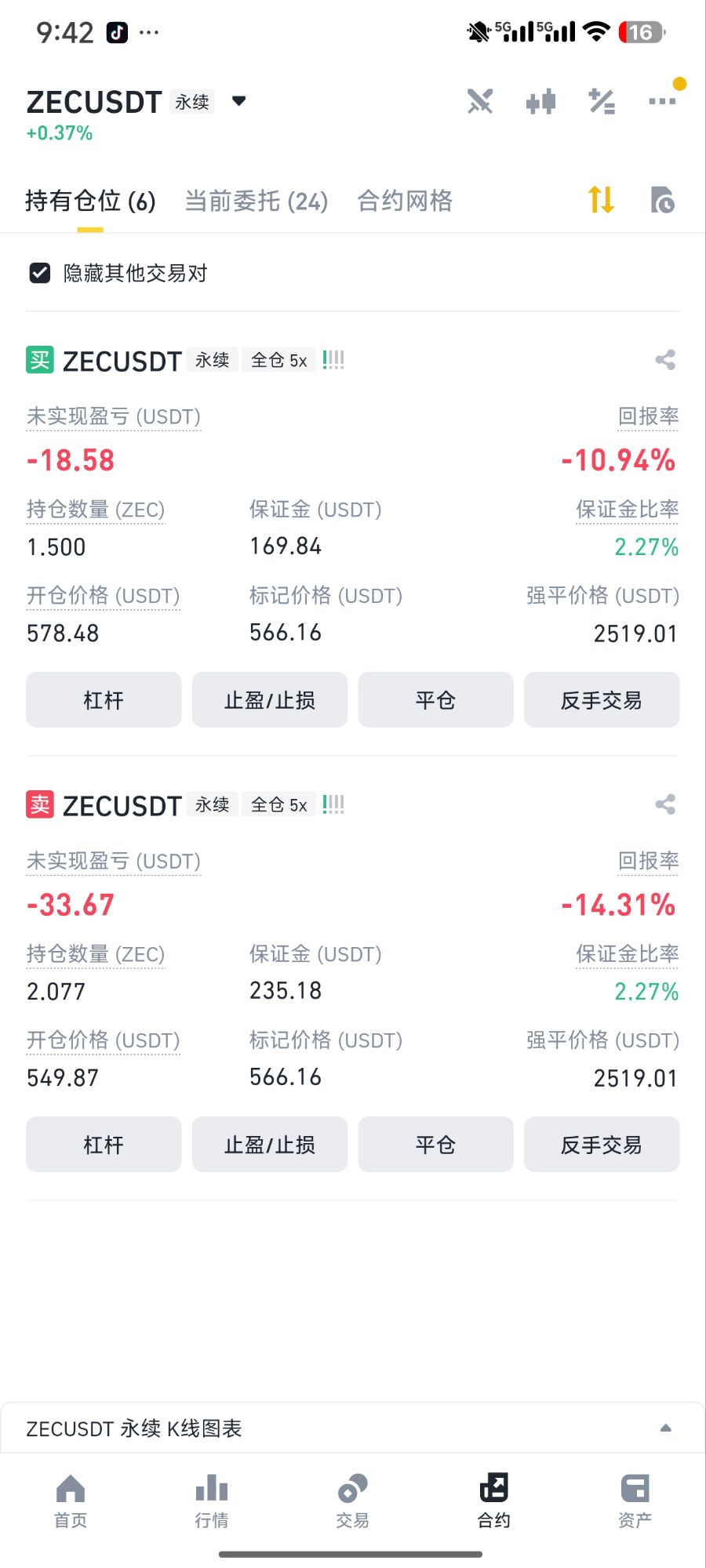 zec好不容易下来,手贱又开了个多单,脑子有点犯抽抽了